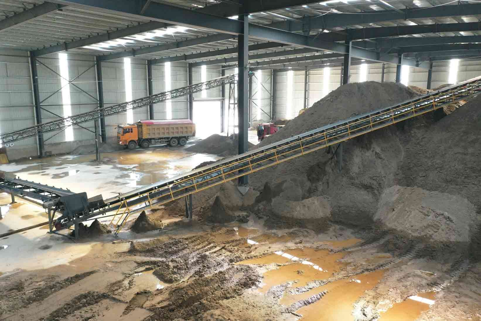 設(shè)備配置:喂料機、顎式破碎機、圓錐破碎機、振動篩、制砂機、洗砂機、污水罐